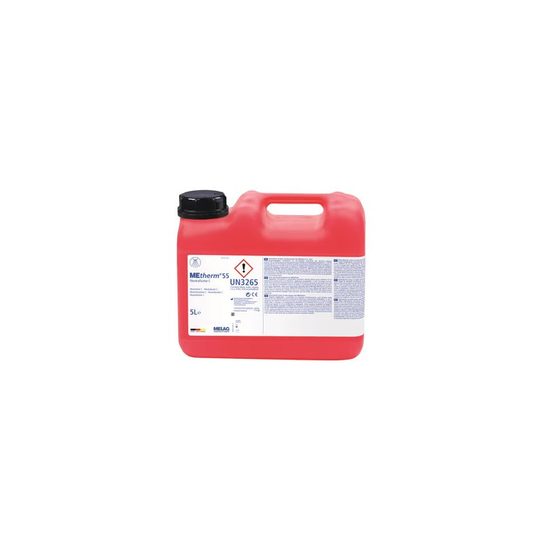 Metherm 55 C previene lo sviluppo di depositi sugli strumenti e sul MELAtherm, ottimizzando i risultati della pulizia. MEtherm 55 C è un neutralizzatore a base di acido citrico, particlarmente rispettoso dei materiali neutralizzante.