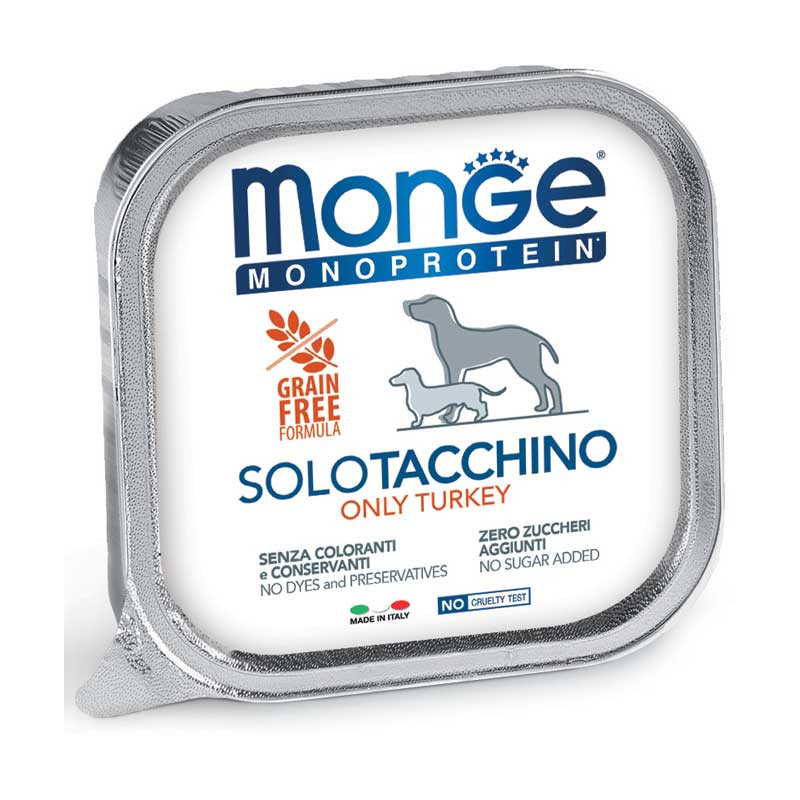 | 800947001414 | MONGE MONOPROTEIN SOLO ADULT PATE' TACCHINO - 24X150GR VASCHETTA - CANE | Su ordinazione |