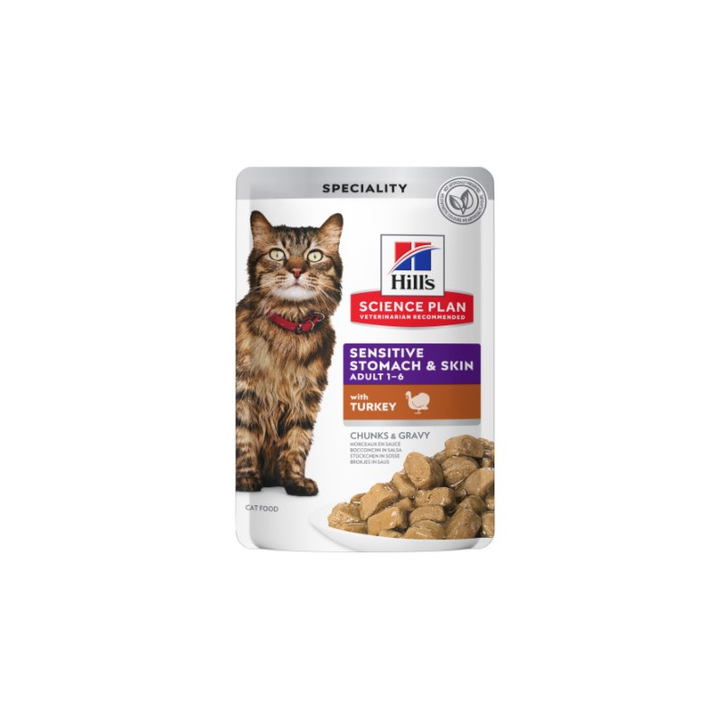 Alimento consigliato per gatti adulti da 1 anno di età, inclusi gatti con sensibilità allo stomaco e alla cute.